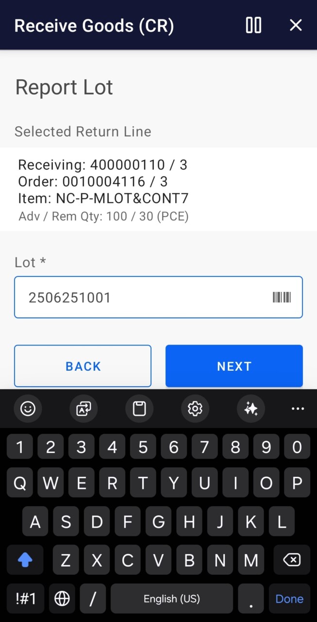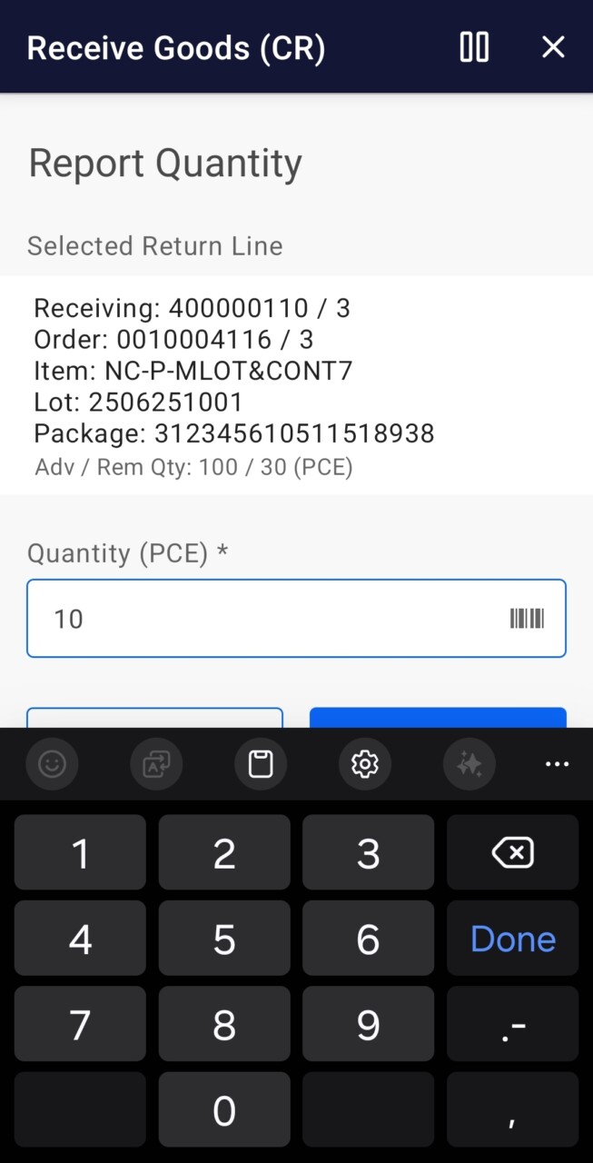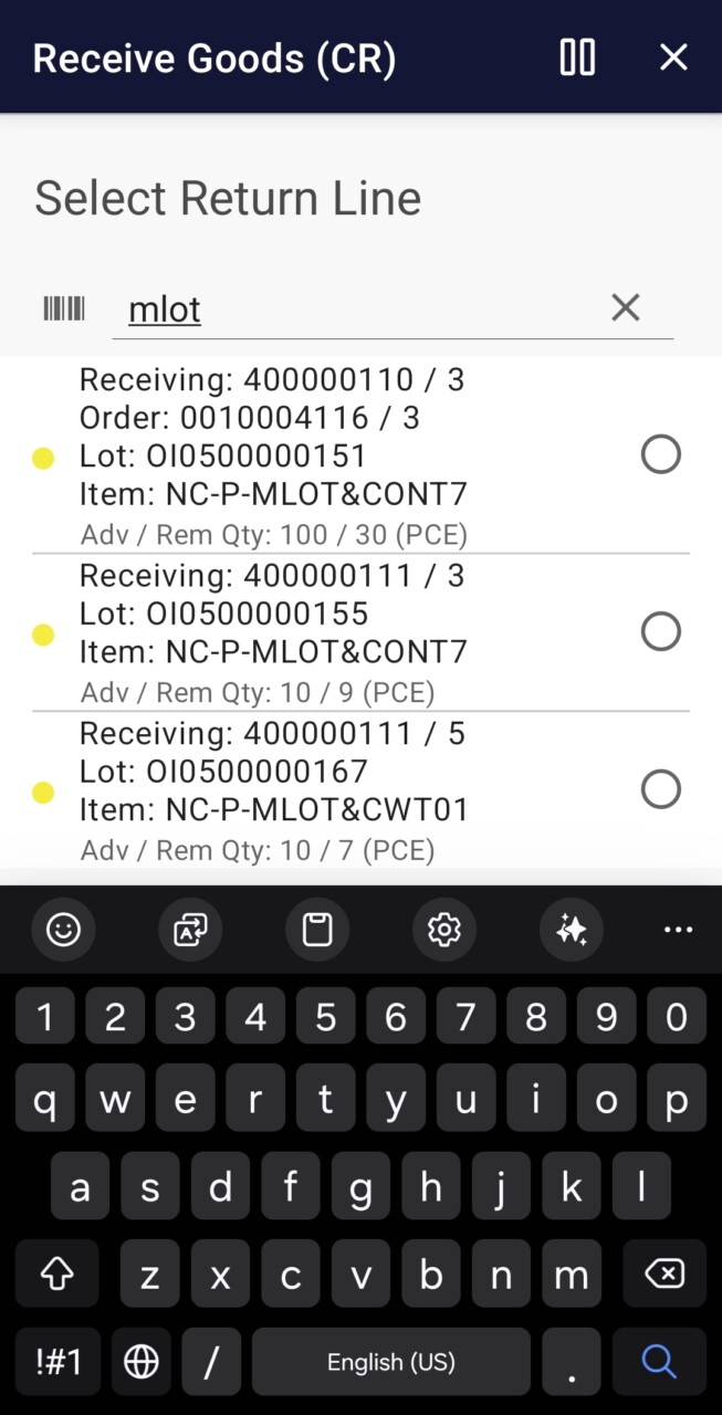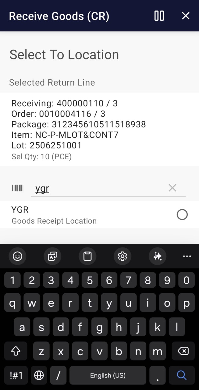 Receive Goods (CR) (Infor M3)