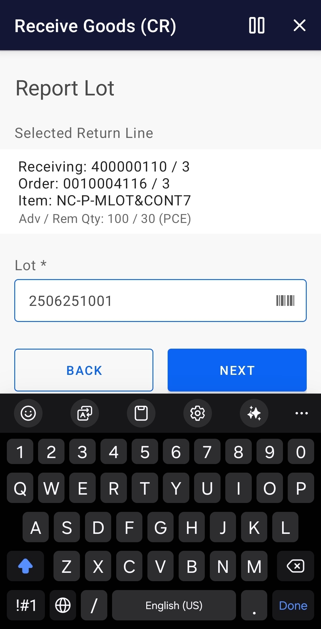 - Report existing or a new Lot, if applicable