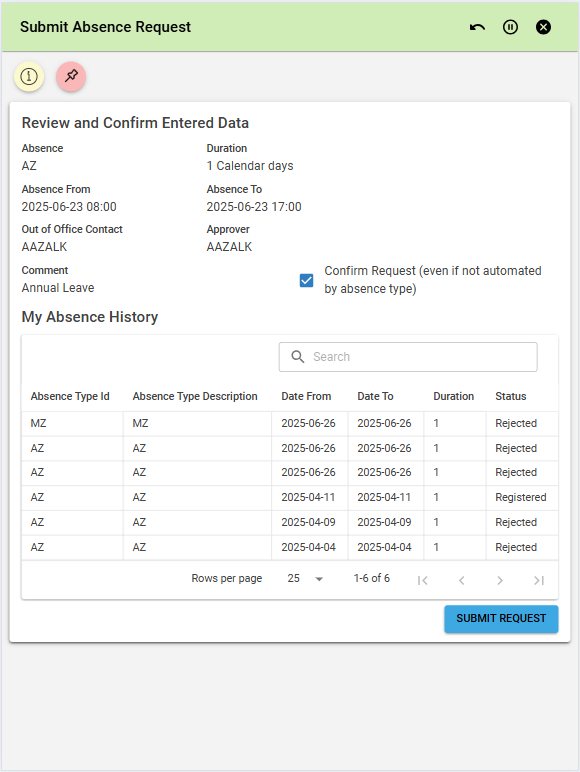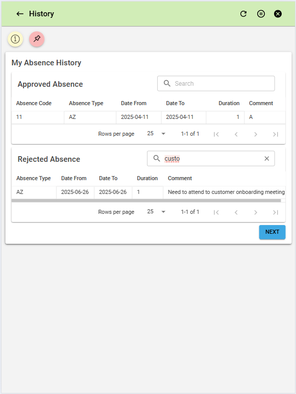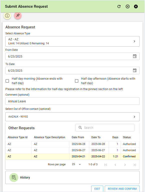 Stay informed with a real-time view of your pending requests and quickly access your absence history.